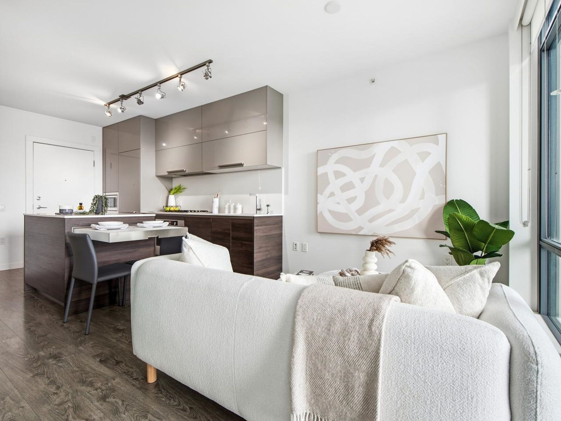 Bright one-bedroom at Milano by award-winning developer Solterra, in the heart of Brentwood. Floor-to-ceiling windows flood the living space with natural light, and in-suite air conditioning keeps things comfortable year-round. Designer kitchen with premium Italian appliances. Unbeatable location: steps to Brentwood Town Centre SkyTrain, The Amazing Brentwood mall, Whole Foods, Costco, and countless dining options. Building amenities include concierge, fully equipped gym, sauna, steam room, hot tub, guest suite, clubhouse with full kitchen, meeting room, and outdoor amenity space with BBQ area. Perfect for first-time buyers, downsizers, or investors. Contact to book your showing.
